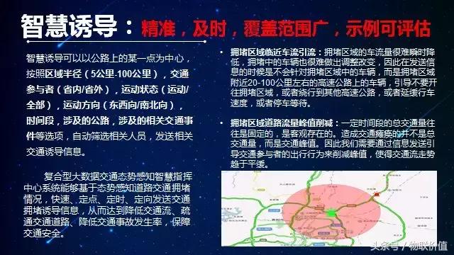 智慧誘導(dǎo)可以精準(zhǔn),及時(shí)的進(jìn)行引流。用戶上路之后,如果收到一些信息,大部分人認(rèn)為是無(wú)效的,但是實(shí)際上收到的信息對(duì)特定區(qū)域和特定人群是很有意義的。這里分為擁堵區(qū)域臨近車流引流和擁堵區(qū)域道路流量峰值削減。擁堵區(qū)域臨近車流引流指擁堵區(qū)域的車流量很難瞬時(shí)降低,擁堵中的車輛也很難做出調(diào)整改變,因此在發(fā)送信息的時(shí)候是不會(huì)針對(duì)擁堵區(qū)域中的車輛,而是擁堵區(qū)域附近20-100公里左右的高速公路上的車輛,引導(dǎo)不要開(kāi)往擁堵區(qū)域,或者繞行到其他高速公路,或者延緩行車速度,或者停車等待。而擁堵區(qū)域道路流量峰值削減指一定時(shí)間段的總交通量往往是固定的,是客觀存在的。造成交通癱瘓的并不是總交通量,而是交通峰值。因此我們需要通過(guò)信息發(fā)送引導(dǎo)交通參與者的出行行為來(lái)削減峰值,使得交通流走勢(shì)趨于平緩。