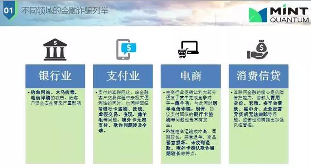 接下來(lái)介紹下不同領(lǐng)域的金融欺詐類(lèi)型,如銀行業(yè)釣魚(yú)網(wǎng)站,木馬病毒,做一個(gè)假的網(wǎng)站;電商行業(yè)促銷(xiāo)讓利大部分便宜了黃牛黨或競(jìng)爭(zhēng)對(duì)手—薅羊毛,與此同時(shí)退單電信詐騙,刷評(píng),協(xié)議支付面臨的銀行卡盜刷等問(wèn)題也是常有發(fā)生;消費(fèi)信貸中借款人冒用身份、老賴、多平臺(tái)借款、黑中介、企業(yè)經(jīng)營(yíng)異常貸后無(wú)法跟蹤等問(wèn)題。