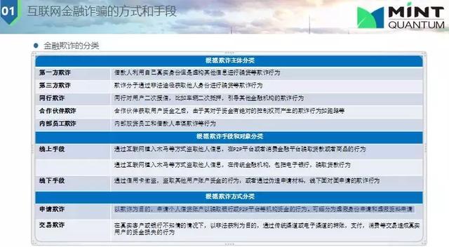 用技術(shù)去做反欺詐都是有針對(duì)性的,在進(jìn)行反欺詐時(shí)需要知道欺詐的類(lèi)型,下面是欺詐分類(lèi),有第一方欺詐,第三方欺詐等。第三方欺詐就是欺詐分子通過(guò)非法途徑獲取他人身份進(jìn)行騙貸等欺詐行為;線下欺詐是通過(guò)信用卡偷盜,盜取其他用戶賬戶資金的行為或者通過(guò)偽造申請(qǐng)材料,線下面對(duì)面申請(qǐng)的欺詐行為;申請(qǐng)欺詐是以欺詐為目的,申請(qǐng)個(gè)人信貸賬戶以騙取銀行或P2P平臺(tái)等機(jī)構(gòu)資金的行為。可細(xì)分為虛假身份申請(qǐng)和虛假資料申請(qǐng)(這在反欺詐中很重要,將壞人擋于門(mén)外);交易欺詐對(duì)數(shù)據(jù)實(shí)時(shí)性比較高。欺詐風(fēng)險(xiǎn)是惡意的,自始至終就是不想還貸,信用風(fēng)險(xiǎn)更多的是一種還款意愿或還款能力導(dǎo)致無(wú)法還款。信用風(fēng)險(xiǎn)主要是看征信、數(shù)據(jù),建模型進(jìn)行處理,計(jì)算欺詐概率,而欺詐是要分清黑白。