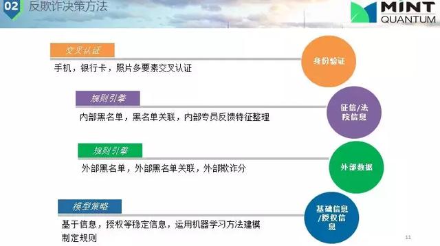 我們常用的一些反欺詐的數(shù)據(jù)和方法有:(1)身份驗(yàn)證,這個(gè)是非常重要的,身份驗(yàn)證在中國(guó)很偉大,如中國(guó)解決了第三方欺詐的問(wèn)題。因?yàn)橹袊?guó)手機(jī)實(shí)名認(rèn)證,有些時(shí)候你很難去做假,這樣我們可以交叉驗(yàn)證,這樣就提高了欺詐的成本;(2)法院/征信信息,內(nèi)部黑名單,有公司會(huì)專(zhuān)門(mén)整理這些信息,可以公開(kāi)給我們使用。用戶信息整合,通過(guò)各公司間信息碰撞,規(guī)則匹配,如果發(fā)現(xiàn)過(guò)去欺詐行為就不給他提供金融服務(wù);(3)模型,評(píng)估用戶行為,進(jìn)行規(guī)則評(píng)判他這種行為是不是欺詐,如何減少錯(cuò)殺準(zhǔn)確抓住欺詐人員。